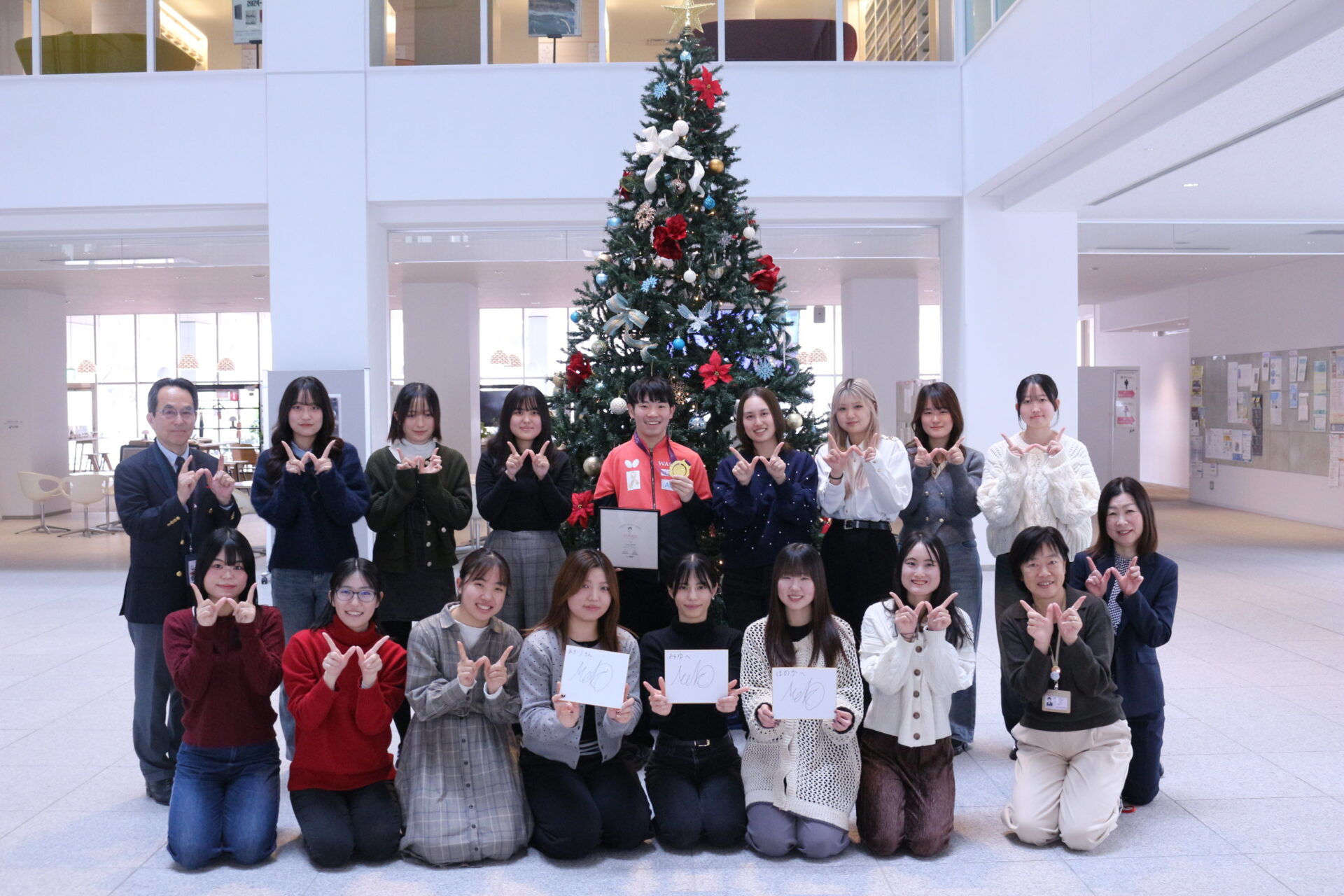 2026/01/13 美しい立ち居振る舞いをならう!「現代日本社会論」の授業でANAのCA直伝の「おもてなし」を学びました。(12/1)