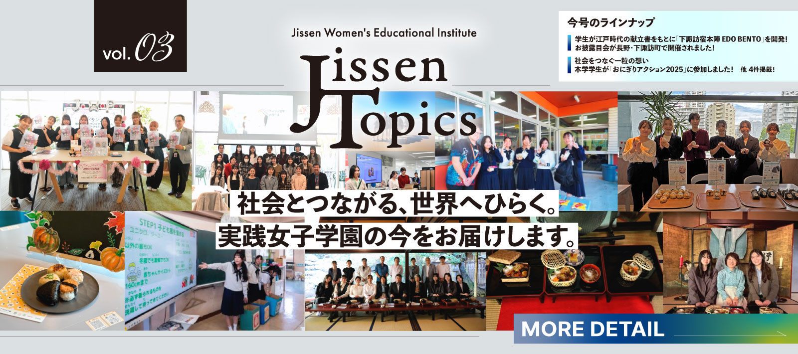本学園が進める「社会連携」「グローバル化」に関する学生・生徒の取り組みを紹介する広報ツール「Jissen Topics」第2号を発行いたしました。ぜひご覧ください。