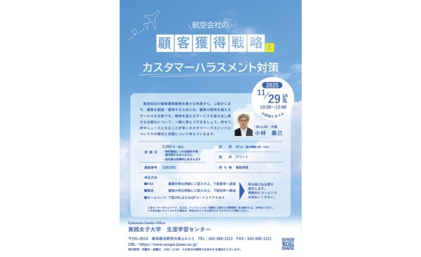 2025/11/10 2025年度【後期】特別講座 “航空会社の顧客獲得戦略とカスタマーハラスメント対策” 受講生募集のお知らせ