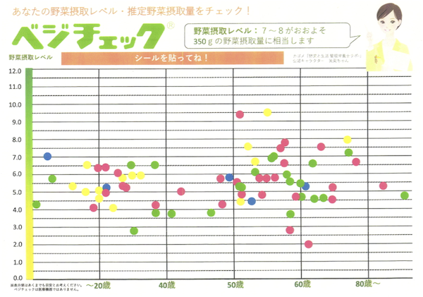 常磐祭において、来場者を対象に、ベジチェック・体成分測定と関連する展示を行う。ベジチェックは昨年度初めて導入して93名の測定を行い、来場者の高い関心を集めた。これらの測定は、簡易的に自分自身の健康状態を把握することができるため、来場者の健康保持増進への意識を高めるきっかけづくりとなることを目的として、来場者の健康づくりを支援する。