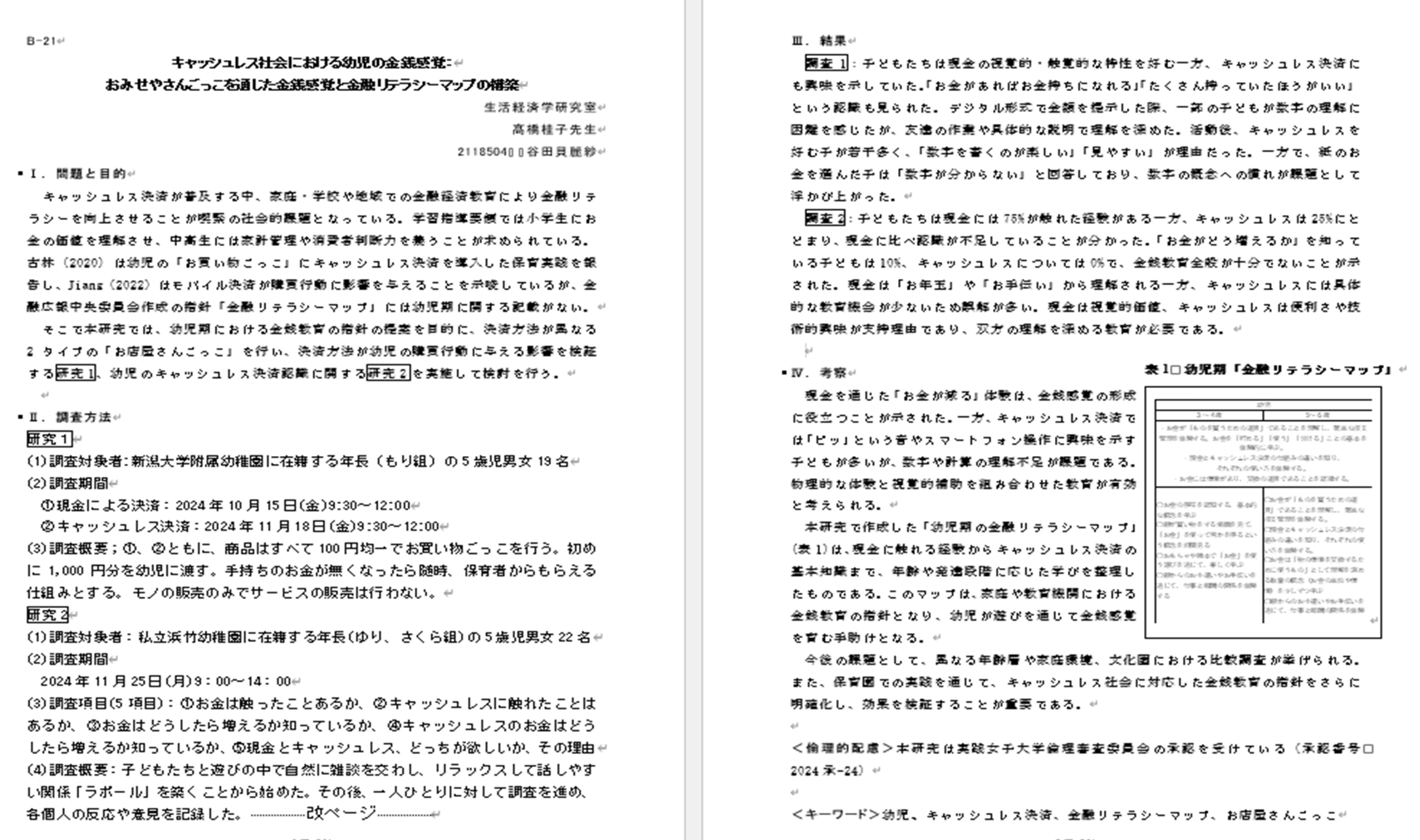 新潟大学附属幼稚園では模擬授業を 2 回担当させていただき、浜竹幼稚園では年長児を対象としたヒアリング調査を許可いただいた。