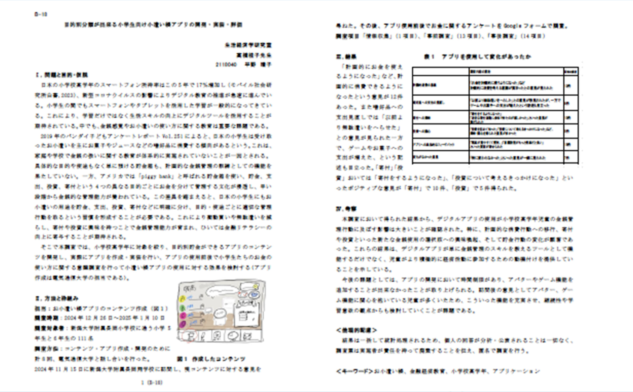 同敷地内にある附属小学校では、デジタルに対応した小遣い帳の実装(改良・実践)を行う(継続研究)。