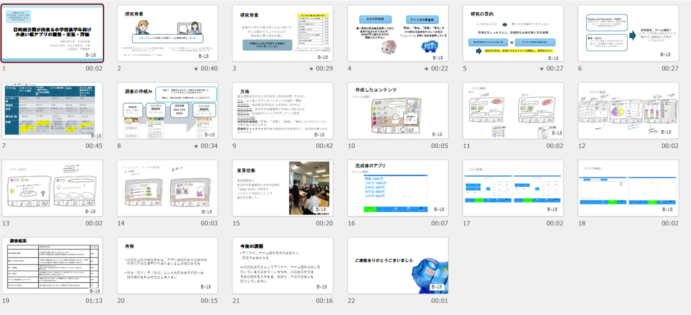 ③ 電気通信大学の村松正和研究室と共同で小遣い帳アプリの開発を行った。開発したアプリは新潟大学附属長岡小学校 5-6 年生限定で公開し、冬休みの課題として小遣いの記録をアプリで管理してもらった。小遣いをもらった段階で何に使うのか、意思決定させる点が特徴である。