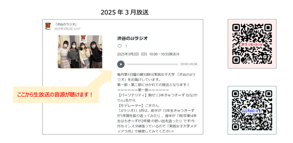 毎月生放送終了後に、 「渋谷のラジオ」サイトの「note」に格納・継続保存されている。