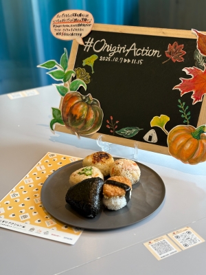 NPO法人TABLE FOR TWO International(以下、TFT)が主催する「おにぎりアクション 2025」の記者発表会が10月7日東京都品川区大崎の複合施設「ゲートシティ大崎」で開催され、多くのマスメディアが取材に訪れました。「おにぎりアクション」は、おにぎり写真投稿を通じてアフリカ・アジアの子どもたちに学校給食と教育の機会を提供する取り組みで、今年度で11回目。本学は今回初めてこの活動に参加し、学生たちは、晴れの舞台で自ら考案したオリジナルおにぎりをお披露目しました。