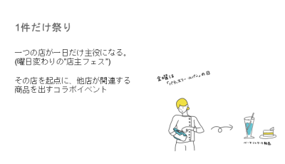 業種・業態が異なる会員で構成される商店会を「個性の集合体」と捉え、多様性を強みにしたブランディングで発展を目指すアイデアを提案。