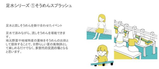 「水の郷百選」にも選ばれた日野の水源の魅力をPRし、水路を人と地域をつなぐ“庭”へと発展させ、地域の人々が自然と集まる場にするアイデアを提案。