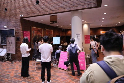 第1部のプレゼンは、商店会のメンバーが各会場やZoomから参加できるほか、通りがかりの市民や市役所職員も日野市役所ロビーで自由に聴講できるスタイルを採用しました。実際に日野市役所ロビーでは、立ち止まってプレゼンを聞いてくださる方々がたくさんいらっしゃいました。今回のプレゼンは、大学が地域と連携し、実践的教育に取り組んでいることを広く発信する絶好の機会となりました。