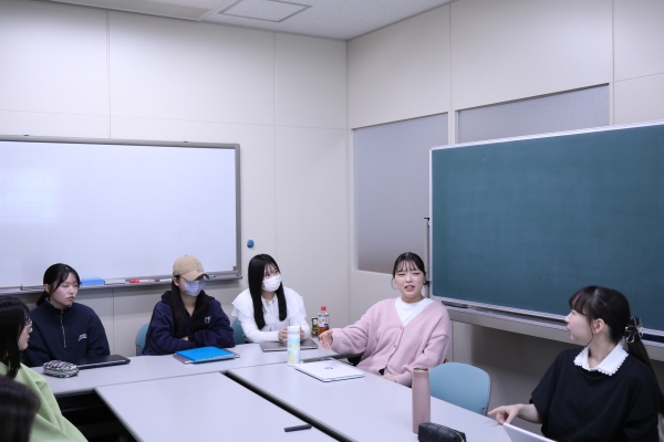 常磐祭の展示を前にゼミ生同士で意見を交わす