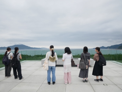 2日目は沿岸部へ移動し、陸前高田市の「東日本大震災津波伝承館 いわてTSUNAMIメモリアル」、東日本大震災の記憶の伝承と地域交流を促進する複合的な観光・防災拠点施設である釜石市の「うのすまい・トモス」を見学。津波の脅威と人々の復興の歩みについて知見を広げました。さらに、釜石鵜住居復興スタジアムにも立ち寄り、防災教育の重要性を再認識。その夜の宿泊先・釜石市内の民宿では、地元市民へのインタビューを通じて地域の暮らしや文化を体感しました。