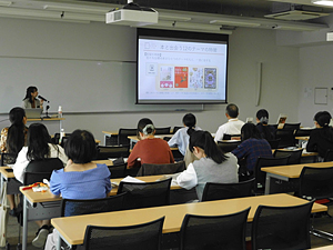 第2部では、和やかな雰囲気の中、卒業生と在学生が互いに近況を語り合いました。公共図書館、学校図書館、美術館図書室など、さまざまな職場で活躍する卒業生からそれぞれの仕事の内容ややりがいなどについて伺い、在学生にとっては今後の進路を考えるうえで大変有意義な機会となりました。