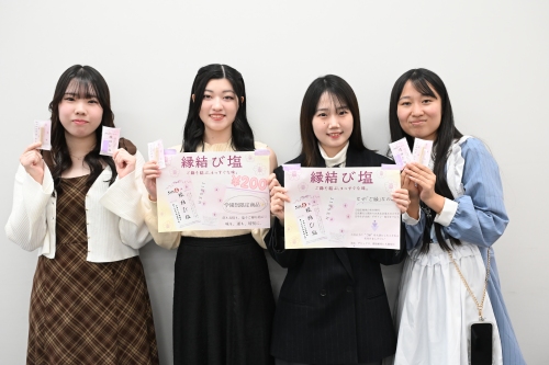 生活科学部現代生活学科の地域・環境経営ゼミ(倉持ゼミ)が、山形県の「さかたの塩」とコラボ!オリジナル商品「縁結び塩」を開発し、販売しました。