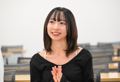 「私たちのグループは、当時休業中だった美湾荘の若女将にお会いし、インタビュー動画を作ってTikTokで配信しました。大変な状況でも笑顔を絶やさない若女将から“思い出を昇華して前を向く強さ”を学び、応援の気持ちがみんなの後押しになることを実感できました。タグの付け方の工夫や投稿後に効果測定を繰り返して改善することなど、課題解決のスキルも身に付いたと思います。このプロジェクトで得た成果は私の自信になり、ガクチカ(学生時代に力を入れたこと)もできたことは大きな収穫です。本学には、向上心のある人をサポートしてくれる環境と、たくさんの“種”があふれています」