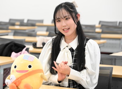「和倉温泉観光協会や和倉温泉の方に声をかけていただくなど、先生方が活動をリードしてくださったのはプロジェクトの最初の頃だけ。以降の取材依頼やスケジュール決め、キャラクターの使用許可、コンテンツのアイデア出しや発信まで、ほとんどすべてを学生だけで行いました。外部の方とのビジネスメールなどは初めての経験だったので、緊張しながらもみんなで相談し合って乗り切り、自ら動く大切さを学ぶことができました。ゼロからものづくりをする楽しさを知り、将来の目標も見つけられたと思っています。本学は、“動く力をくれる場所、自分の力を試せる場所”だと心から実感しました」