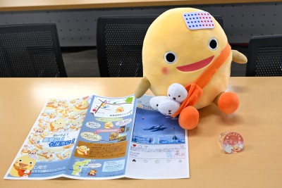 わくたまくんのぬいぐるみとともに、笑顔の(左から)工藤さん、中島さん、大湯さん