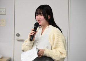 この講演には、鹿島愛縫さん(人間社会学部人間社会学科2年)が司会の一人として参加しました。鹿島さんは、高校生の頃から多様な家族のあり方に関心を抱いてきたため、レインボーweekの開催を知り、とてもうれしかったそうです。「今回のイベントで普段接する機会のなかった他学部や他学年の人たちと一緒に活動できて楽しかった」と話していました。