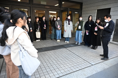 ボランティア前に集合する学生たち