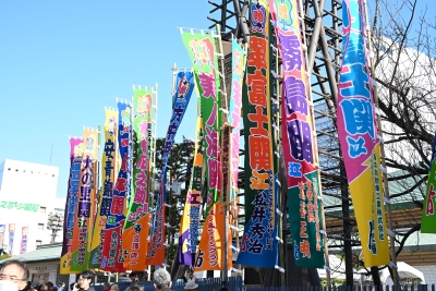 両国国技館周辺に立てられたカラフルなのぼり旗