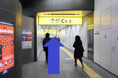 ⑧C1-3番出口の看板の下をまっすぐ進みます。