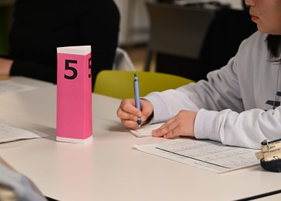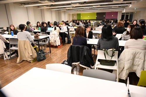 女子大出身の企業の採用担当とざっくばらんに話をする「しごと座談会」が12月23日、渋谷キャンパスで開催され、本学を含め東京都内の5つ女子大に通う40人以上の学生が一堂に会して幅広い業種の採用担当者と交流を深めました。年齢も比較的近い女子大の“先輩OG”から就活に対する助言をもらい、採用者目線の注意点も聞けるという、他大学ではあまり例のない画期的な取り組み。各テーブルでは、学生からの就活の悩みや社会人になるうえでの率直な疑問などが出されました。これに対し、採用担当者は的確にアドバイスし、熱心にメモを取る学生の姿が見られました。