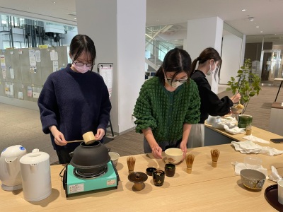 We also served freshly whisked matcha with help from the university’s Urasenke Tea Ceremony Club. Students enjoyed their own handmade nerikiri with the matcha, took photos together, compared their creations, and chatted in a lively mood the whole time.