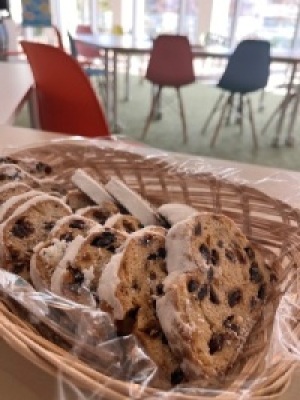 Approximately 40 students participated in the event and listened attentively while enjoying Stollen, a traditional German Christmas pastry. The students showed great interest and curiosity, expressing surprise at the different ways Christmas is celebrated in Germany and learning about customs that were new to them.