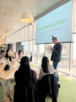 On December 23, 2025, an event titled “German Christmas” was held. During the event, a professor with roots in Germany gave an engaging presentation in English, introducing the concept of Christmas in Germany, how it is celebrated, and how it differs from Christmas traditions in Japan. The presentation was supported by slides and videos, making the content easy to understand.