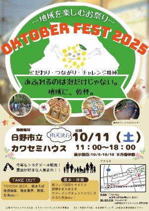深まる多摩の秋を地域の人々で楽しむ「オクトーバーフェスト2025」を、10月11日(土)日野市立カワセミハウスで開催します。生活科学部現代生活学科の地域・生活文化ゼミ(以下、須賀ゼミ)の学生が、同フェスト実行委員会の主軸として、企画・運営を行います。
