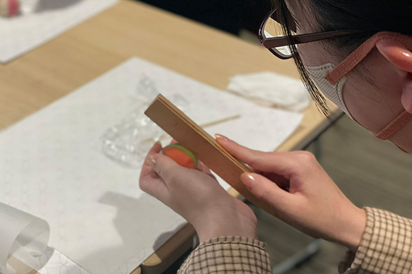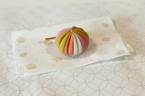 日本文化への理解を深め、留学生と実践生の交流を促進することを目的に、グローバルラウンジで「練り切り制作体験」を実施しました。講師の先生をお招きし、初心者向けの“毬”をテーマに制作を行いました。