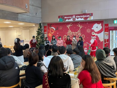 日野キャンパス桜ホールにて、日野市の日本語学校「東京日野国際学院」の留学生の皆さんとともに、クリスマス会を開催しました。
