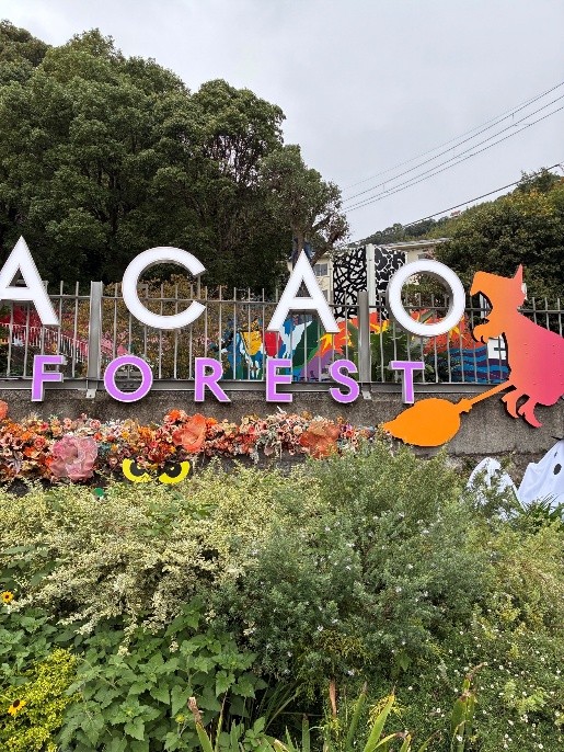 私が訪れた時は、ハロウィン企画が開催されており、木などの植物がおばけや魔女の仮装をしていました。魔女のほうきもあり、まるで空を飛んでいるかのような写真も撮ることができました!