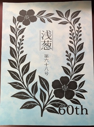 今年は現代文学研究部にとって60年という節目の年、とはいえ、やることは変わりません。例年通り、過去3年分の部誌と今年の新刊の部誌『浅葱』の販売、そして「17歳の自分について」というお題で書いたフリーペーパーの無料配布です。どちらも顧問の棚田先生にご寄稿いただきました。更に、今年の『浅葱』は表紙と裏表紙がいつもの無地ではなく、豪華になったので写真を載せました。それがこちら!