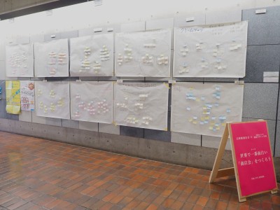 各班で作られたブレストマップは、現在、日野キャンパス本館1F掲示板に掲示されています。