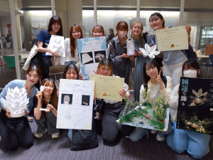 私たちの代では、オープンキャンパスで来場者の方々が一日で日野キャンパスを回りきるのは難しいのではないかと意見が挙がり、日野キャンパスを模型にして、それを見て全体を把握できるように工夫しました。日野キャンパスの模型を作るのは大変でしたが、行事ごとにゼミのみんなの輪がさらに深まったので嬉しかったです。大学生になると友達と受ける授業が異なったり、課題も個人でやるものが多い中で、一つのテーマをみんなで成し遂げるこのゼミに入って仲間の大切さを改めて実感しました!