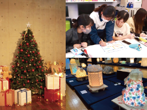 2024前期は内藤ゼミ・橘ゼミと合同で人工大理石を用いた製品コンペを実施、さらにPutit Survey(ちょっとした調査)を実施してスライドにまとめ発表しました。後期は11月に常磐祭で「不思議の国のアリス」をテーマに光アート空間の展示を、12月にはクリスマス・イルミネーションを本館内のスペースで展開。一年中、何らかのプロジェクトで力を発揮しています。楽しんで、頑張る!