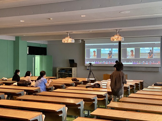 一部の学生は対面で授業に参加しましたが、3密にならないようソーシャルディスタンスを意識した座席となっており、全員マスクの着用をし、換気をして授業を実施しています。