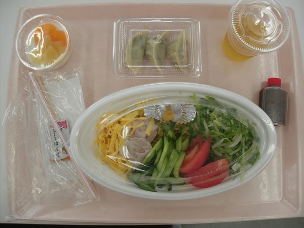 前期最後となった今回のメニューは、冷やし中華・餃子・牛乳寒天でした。