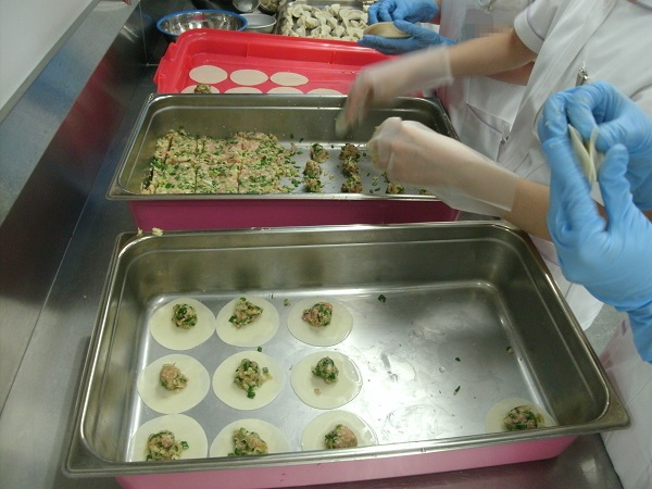この日は下処理室で餃子を300個包みました。