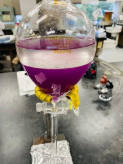 この写真は水の層と酢酸エチルの層に分かれている様子です。