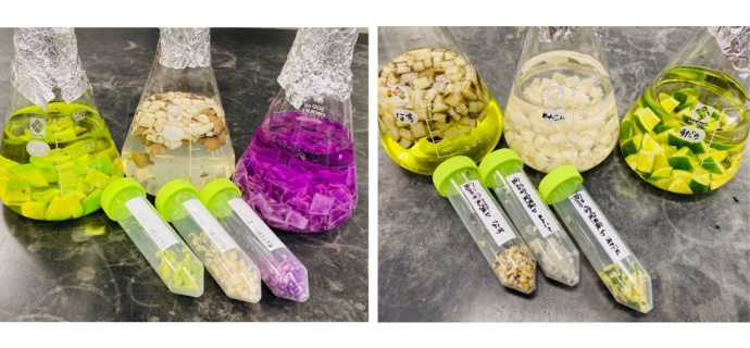 第1回・第2回の授業では、食品に含まれる抗酸化性や抗菌性を調べるための準備をしていきます。