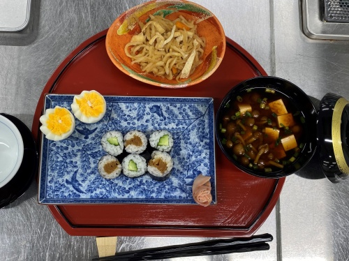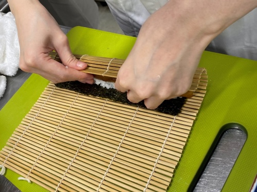 海苔からご飯がはみ出てしまったり、具が端に寄ってしまったりと苦戦していましたが、なんとか形にすることができていました。