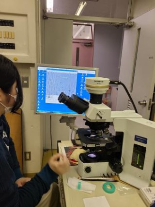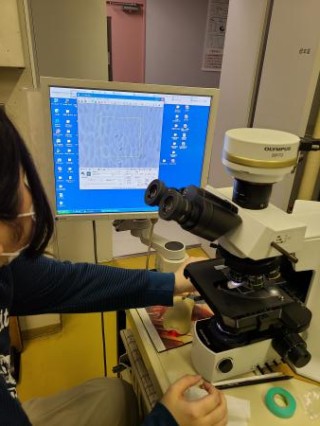 この顕微鏡を使って観察したものをデータにしていく作業を行います。