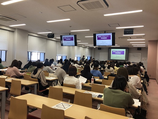 実践入門セミナーとは、実践女子大学の創立者・下田歌子のことや、大学での授業の受け方、図書館の使い方、レポートの書き方、プレゼンテーションの仕方など様々なことを学ぶ講義です。