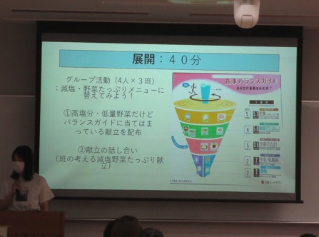 実習の最後には、グループごとに検討した栄養教育方法発表しました。