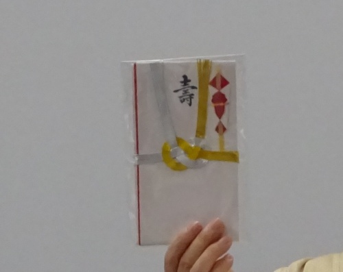 次に礼法についてお話ししていただき、社会人になると避けては通れない冠婚葬祭に関する金封・水引について学びました。例えば、結婚式で使用する祝儀袋について、意味や成り立ち、袋のデザインから金額、書き方などを教えていただき、その他にも不祝儀袋(葬儀等で使用する)について実際に袋の実物を見ながら学ぶことができました。