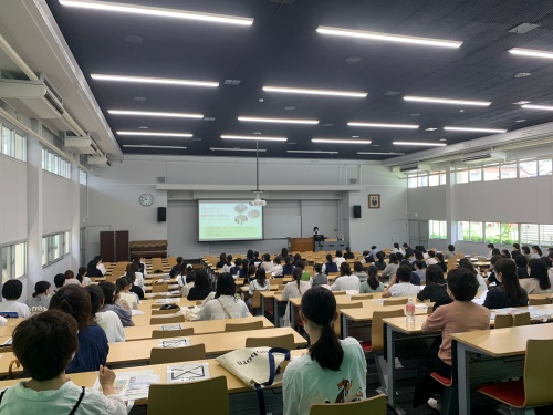 学び紹介では、食生活科学科の先生から各専攻の特徴や取得できる資格についての説明がありました。