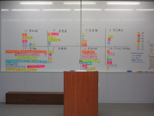続いて6分間で出た意見(付箋)をホワイトボードに貼っていきます。