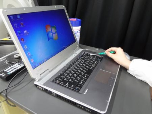 綿棒を少し大きくしたような検査キットで、調べたい部分を拭き取って機器にセットします。