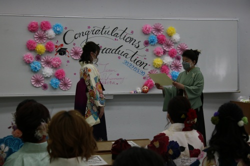 華やかな袴に身を包み、この日を迎えられたことに喜びを感じている卒業生の姿はとても輝かしく見えました。