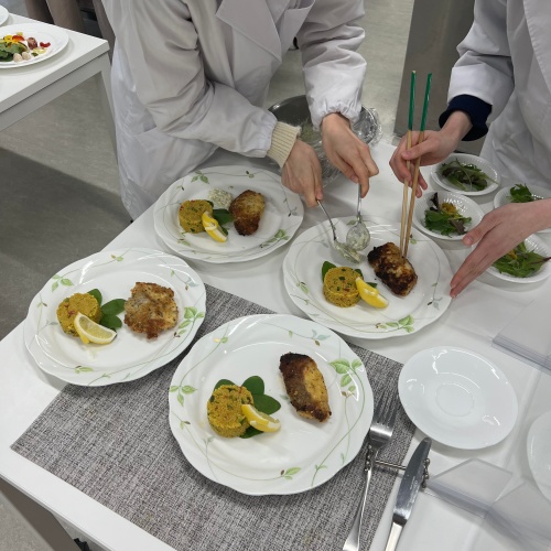 「バルサミコ酢やフォアグラなど、食べたことのない食材が多かったため、授業を通して調理法だけでなく、味もしっかり学ぶことができた。」